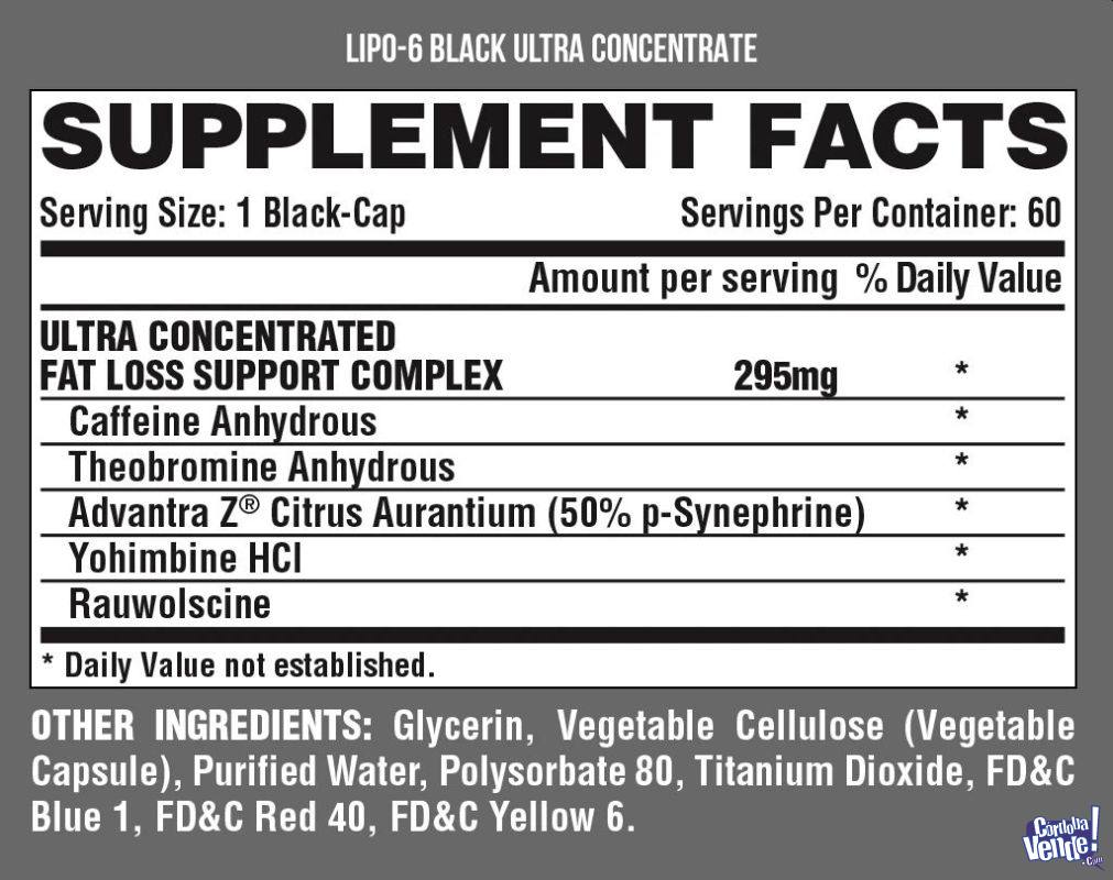 Lipo 6 Black sirve para perder peso eliminando la grasa corporal. Apoya la termogénesis extrema y suprime el apetito, aumentando la energía y el estado de alerta.